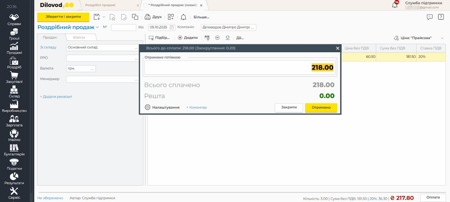 Тепер у Dilovod можна автоматично заокруглювати суми у готівкових платежах відповідно до нових правил, які діють з 1 жовтня 2025 року:
