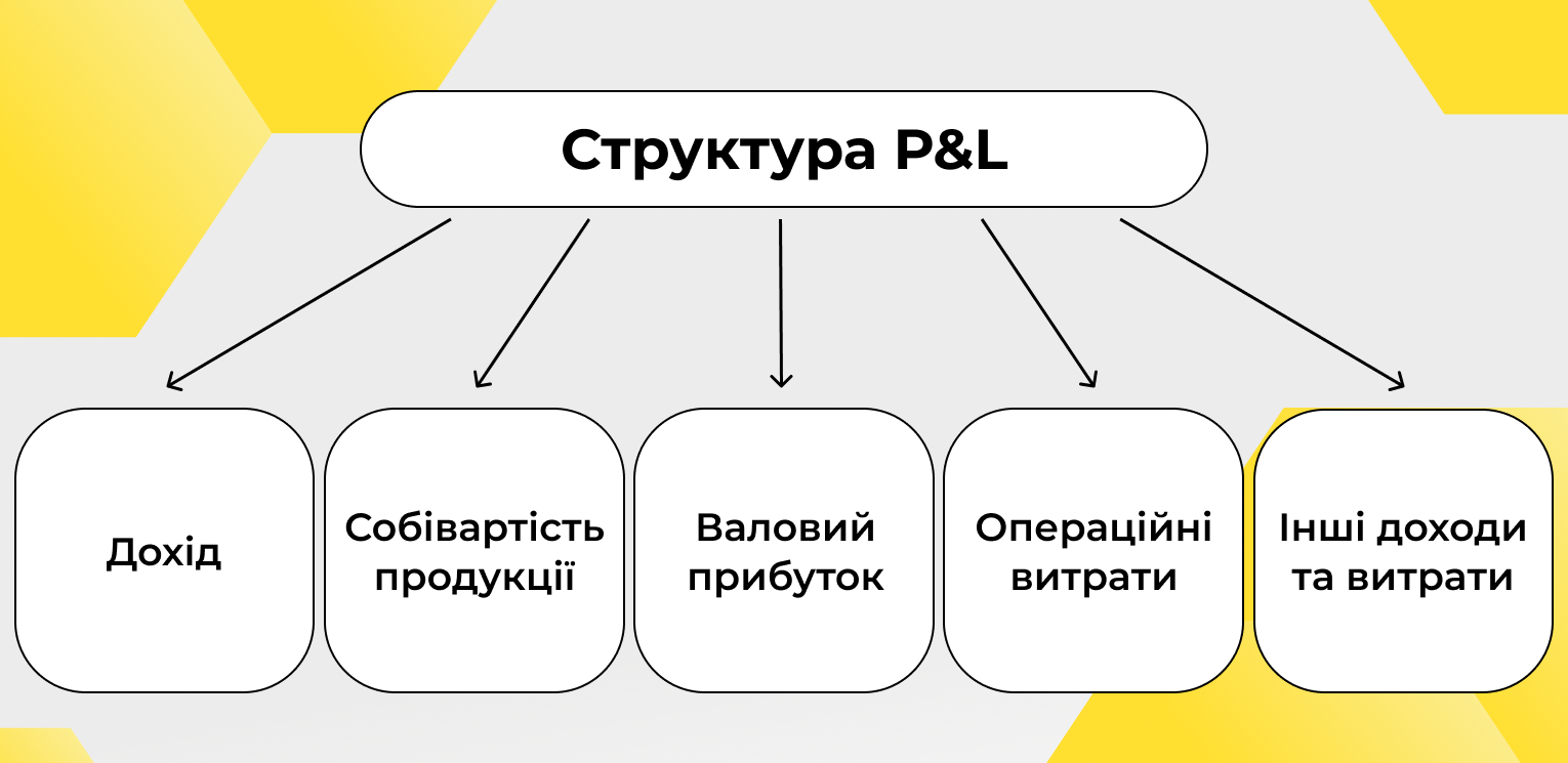 Кожен розділ звіту P&L показує свою частину фінансової картини: звідки приходить дохід, на що йдуть гроші та яку суму бізнес отримує наприкінці періоду. Розглянемо основні складники P&L.