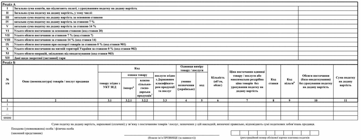 - порядковий номер ПН — унікальний номер у межах звітного періоду;