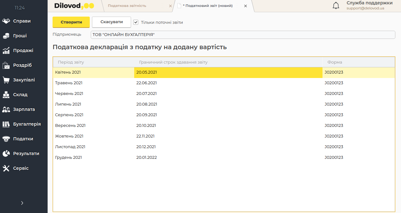 Dilovod подходит для юридических лиц на едином налоге, общей системе (в т.ч. плательщикам НДС), а также резидентам Дія.City. Позволяет формировать и отправлять объединенную отчетность по НДФЛ и ЕСВ, Декларацию плательщика единого налога, налога на прибыль, НДС, а также финансовую отчетность в налоговую: Баланс (форма 1, 1м, 1мс) и отчет о финансовых результатах (форма 2, 2м, 2мс).